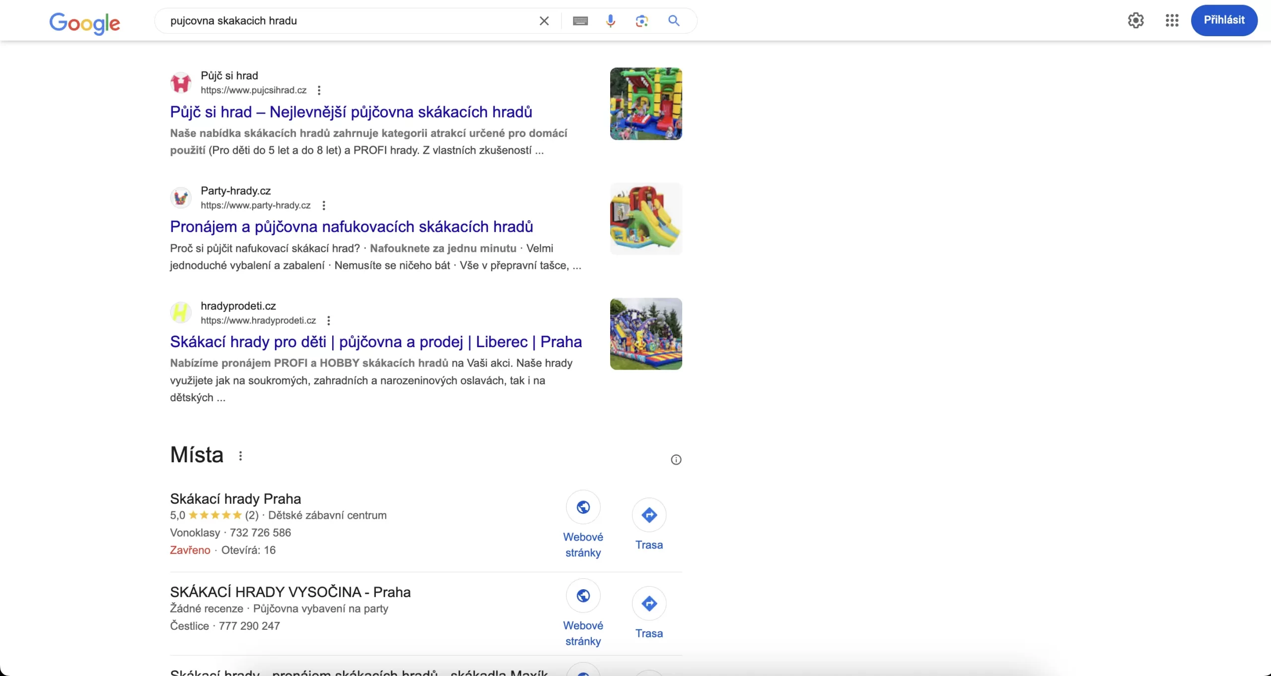 Půjč si hrad — 1. místo ve výsledcích vyhledávání