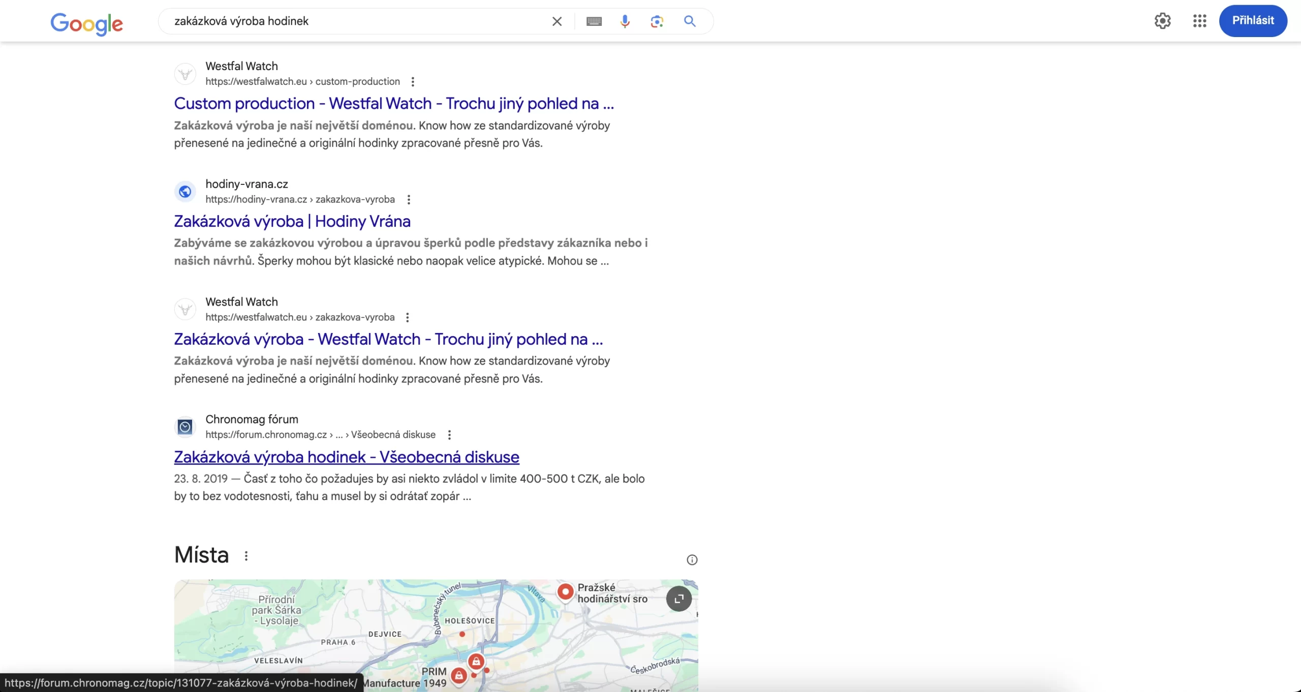 Westfal Watch — 1. místo ve výsledcích vyhledávání