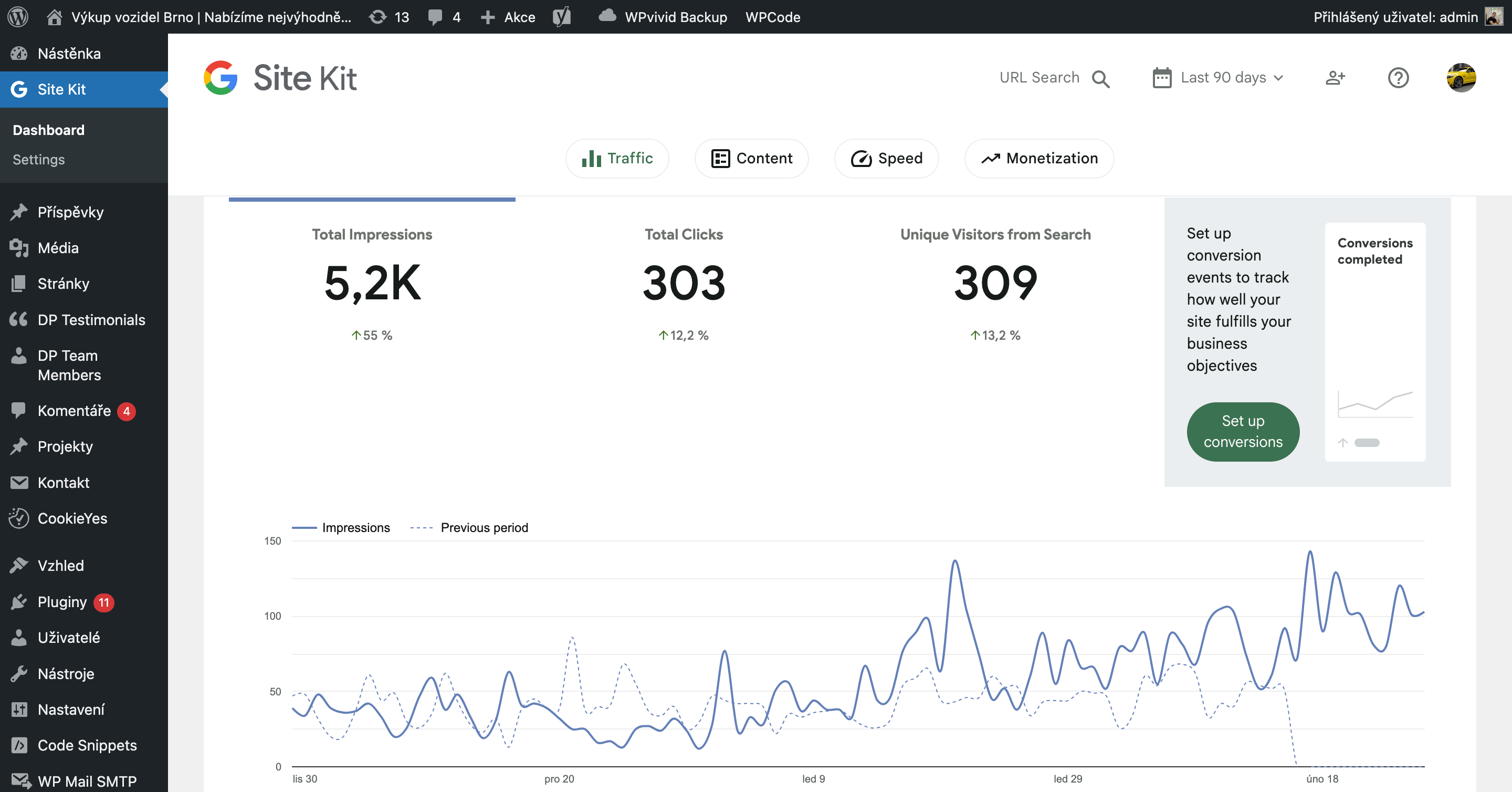 Hledanost cca 500 měsíčně na slovo výkup aut brno – stačilo se zaměřit na tato klíčová slova a již nebylo třeba platit poptávky z PPC.